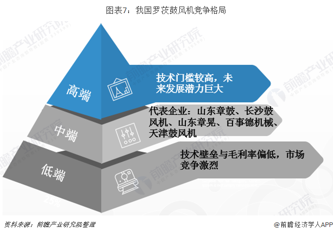 低端产品市场技术壁垒与毛利率偏低,市场竞争激烈,国内大多数罗茨鼓风机生产厂商主要从事L系列罗茨鼓风机等低端产品的生产。