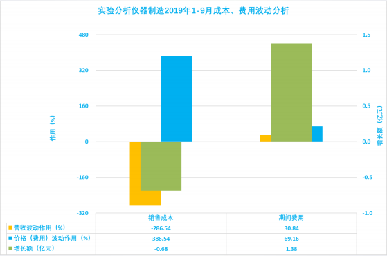 3.3.4 实验分析仪器制造2019年1-9月成本、费用波动分析