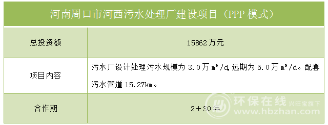 河南周口市河西污水处理厂建设项目(PPP模式)